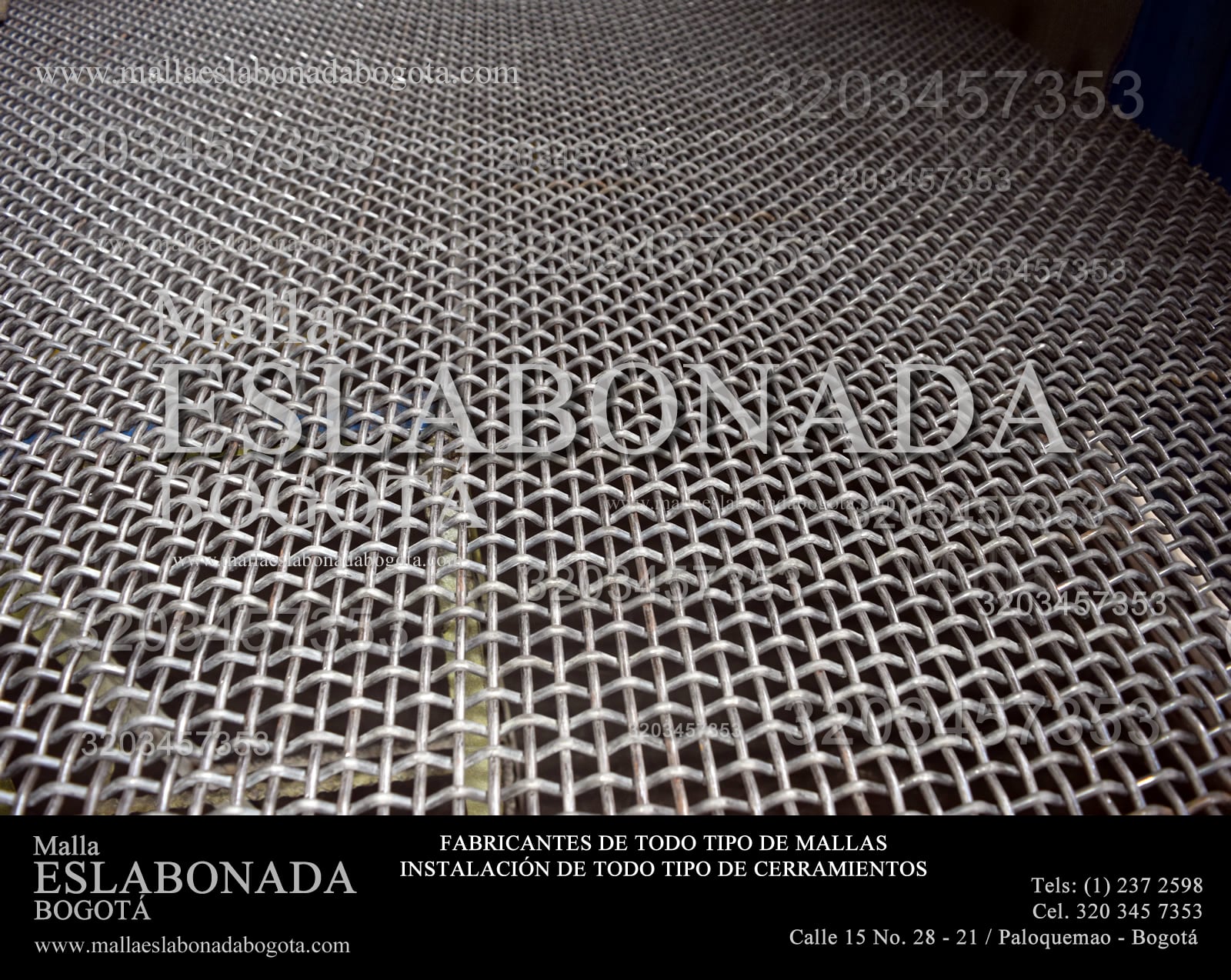 Aunque para la fabricación de esta malla se tiene en cuenta las especificaciones del cliente, por lo general esta es fabricada con huecos en forma de cuadrado o rectangular que va desde 1,2 mm hasta los 152 mm; además los calibres abarcan desde 1,6 mm hasta los 12 mm.: